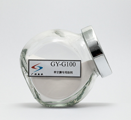 GY-G100 is the special additives for glyphosate soluble granuleor powder, it is the compound product of anionic surfactant, nonionicsurfactant and other additives, have excellent wetting and spreadingperformance after compounding with glyphosate, belongs to environment-friendlygreen product and can realize biodegradation completely.